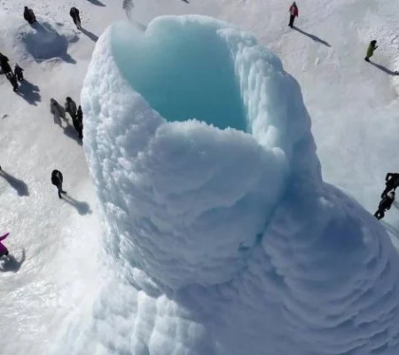 Com imagens e vídeos viralizados na internet, a torre de gelo de 14 metros de altura, localizada entre as aldeias de Kegen e Shyrganak, no meio de um planalto totalmente coberto de neve, jorra um esguicho contínuo de água que, devido à temperatura local, se converte instantaneamente em gelo.