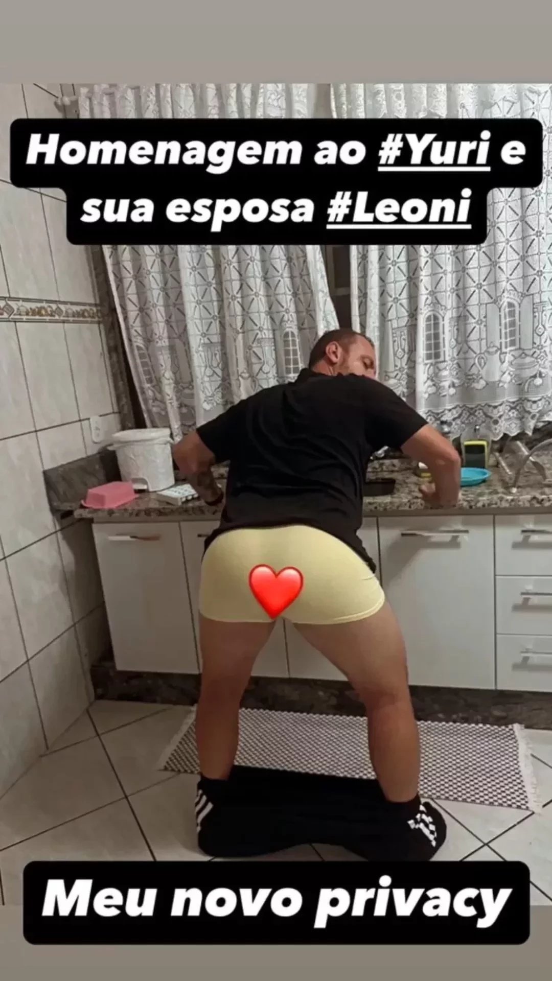 Nos stories de seu Instagram, Zé Love ironizou uma foto sensual de Yuri, famosa nas redes após o peão compartilhar o clique em seu conteúdo adulto. "Gente, estou abrindo um Privacy a partir de hoje e eu vou botar meu bumbum na pia", disse Zé, antes de publicar uma foto sua de cueca imitando a pose. A imagem veio acompanhada da legenda: "Homenagem ao Yuri e sua esposa, Leoni. Meu novo Privacy".