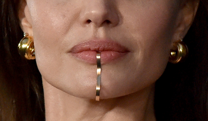 Angelina Jolie brilhou no tapete vermelho da estreia de “Eternals”, novo filme da Marvel. Na ocasião, a atriz apareceu ao lado dos filhos, com um vestindo um longo da Balmain e um acessório diferenciado: um chin cuff, peça de metal encaixada entre a boca e o maxilar.