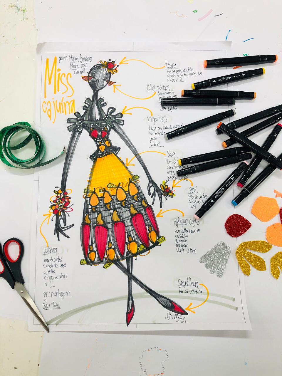 Com curadoria de Rita de Cássia e Rodrigo Cantarelli, os croquis exibidos na mostra foram publicados no Anuário do Carnaval Pernambucano, que compõe a coleção do Cehibra, e aludem a figuras da história e elementos da fauna e flora associados à indústria e agroindústria locais. “Os desenhos de Manoel foram confeccionados sob encomenda de malharias e fábricas da indústria têxtil. As senhoras da elite iam até essas lojas e escolhiam a fantasia a ser confeccionada. Com elas, fizeram parte até dos concursos de fantasias”, contextualiza Betty. Além dos painéis, com desenhos e textos curatoriais, o público poderá conferir partituras, como a do Hino do Vassourinhas.