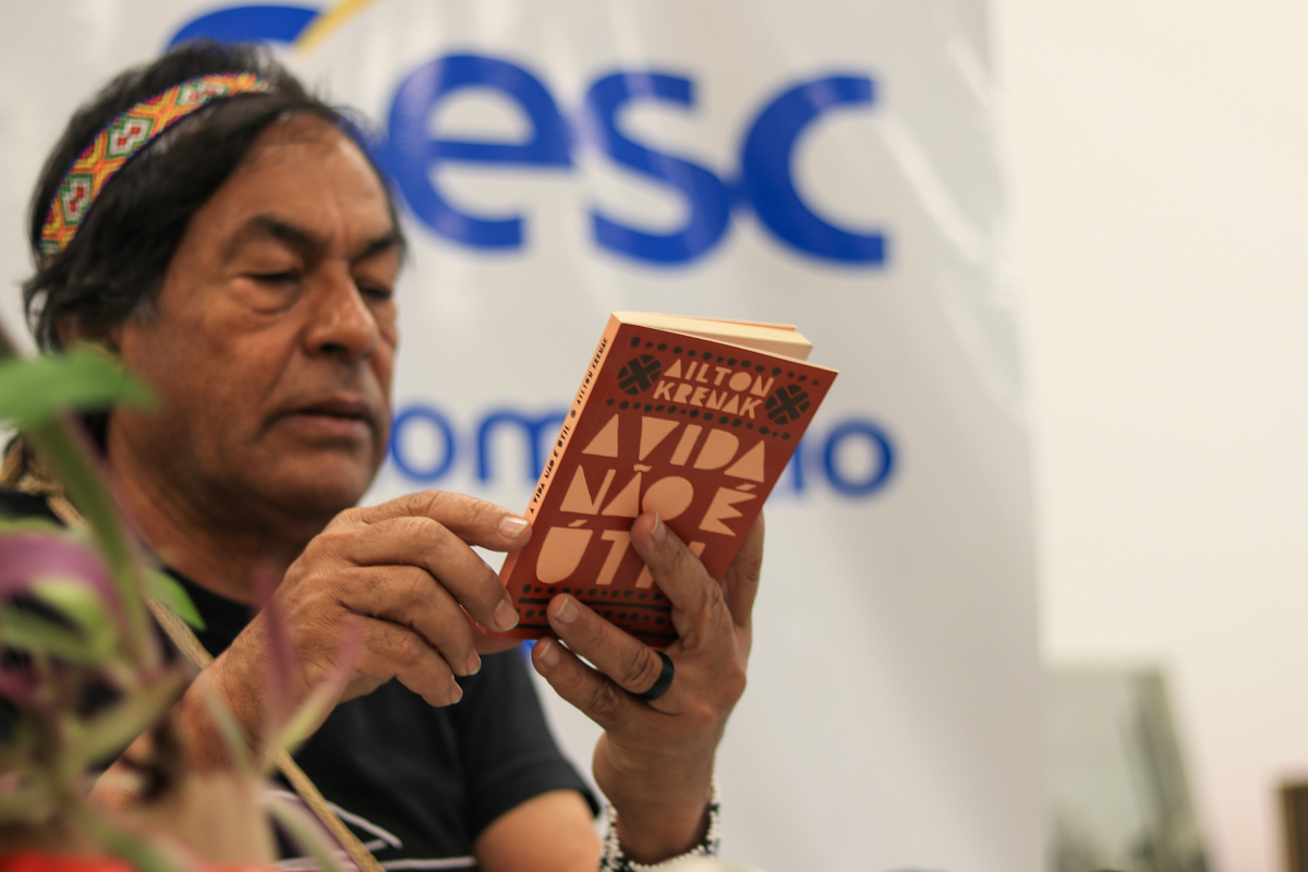 Autor de “Ideias para adiar o fim do mundo”, Aílton Krenak, falou sobre a necessidade de preservação dos recursos naturais, a manutenção dos rios e a poluição do meio ambiente. Também falou sobre a expectativa dos povos indígenas sobre o futuro.