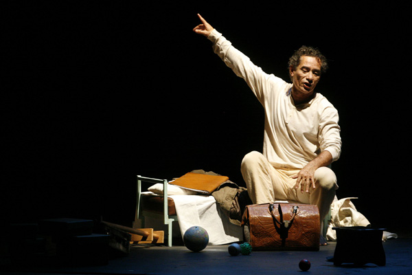 Chico Diaz na peça A Lua vem da Ásia (Divulgação)