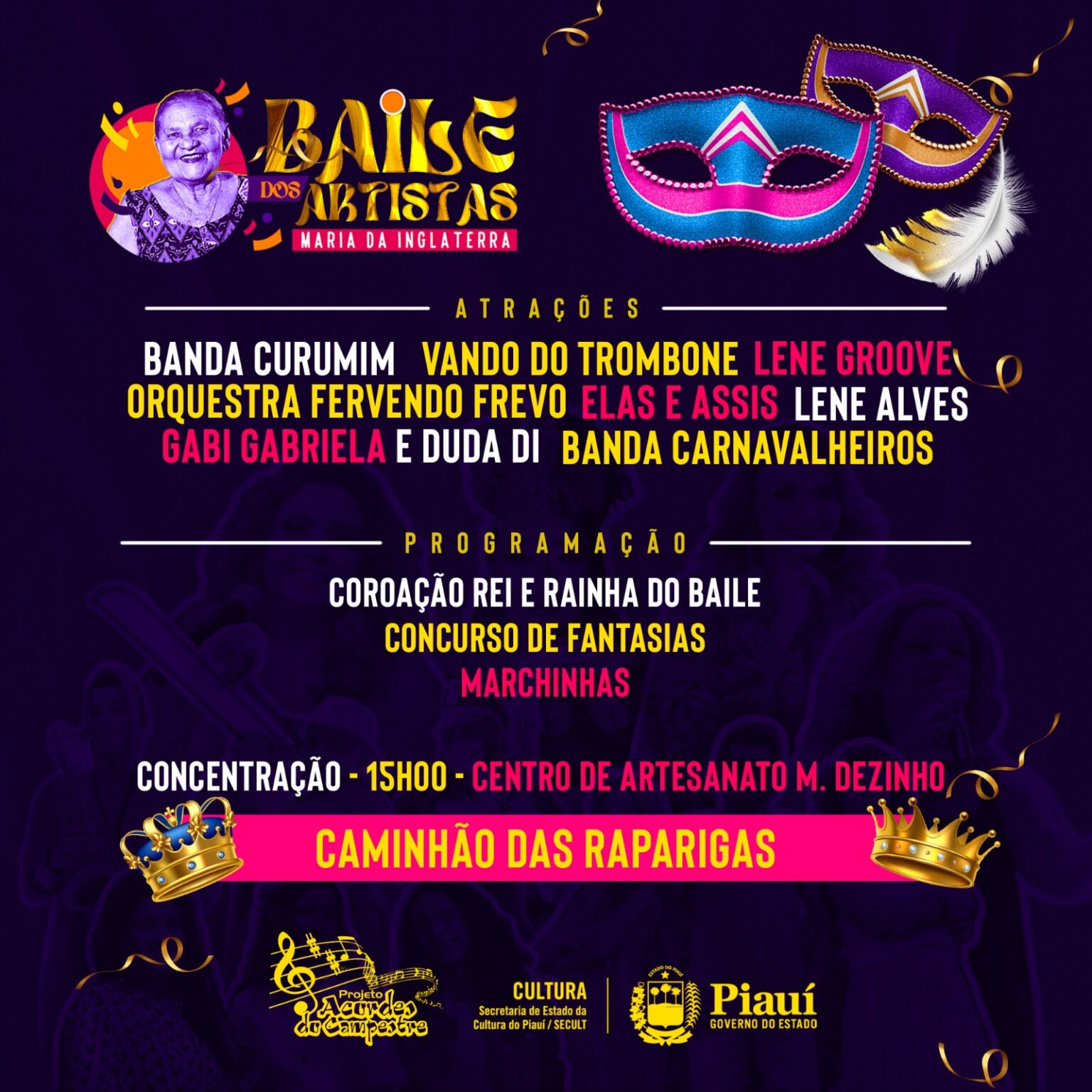 O Baile dos Artistas é uma realização do Governo do Estado do Piauí, por meio da Secretaria de Estado da Cultura (Secult), e visa à releitura dos grandes bailes ocorridos no Club dos Diários nas décadas de 1940, 1950 e 1960.