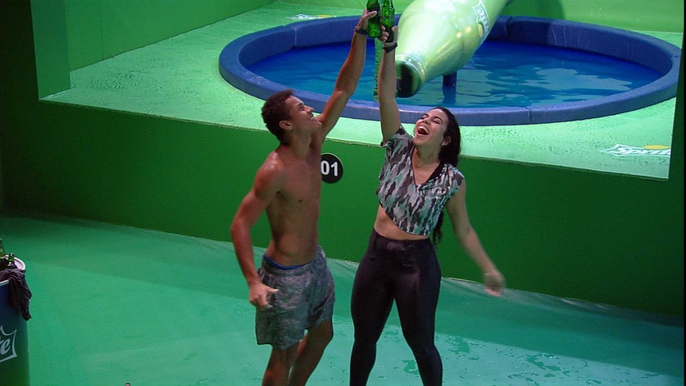 Danrley e Elana são os últimos a deixar a Prova do Líder Sprite. A dupla ficou mais de 13 horas na disputa e se surpreendeu com a saída de Diego e Maycon. Os dois decidiram desistir. O carioca e a piauiense comemoraram muito.
