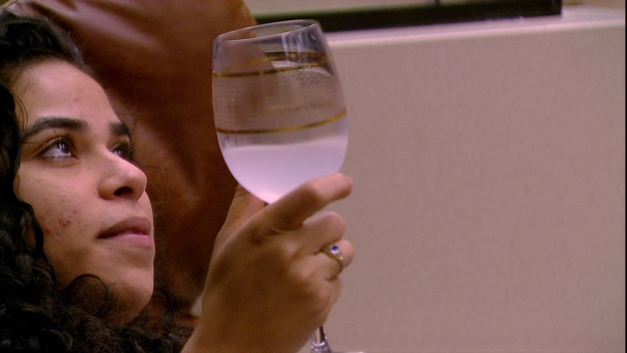 Enquanto os brothers acorrentados preparam-se para dormir no quarto Diamante, Elana desfrutou sozinha do quarto do líder na madrugada de hoje. A sister, que venceu a prova pela terceira vez, sentou na poltrona e fez um brinde sozinha.
