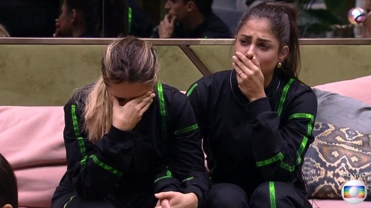 Ao saberem por Tiago Leifert que estavam no paredão, Mari e Gabi choraram e foram consoladas pelas sisters
