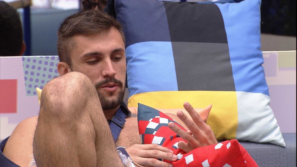 Arthur continua: "Eu não quero ser o culpado por estar atrapalhando alguém". E Carla Diaz alega que esse não era o assunto: "Eu acho que é uma noia é que você não precisa ter. Minha relação com os outros é a minha relação com os outros, e as pessoas sabem muito bem". Arthur discorda e comenta: "Mas já falaram diversas coisas para você em relação a isso né?!". Mas, a sister diz: "Não, as pessoas reconhecem que o jogo é diferente que a gente".