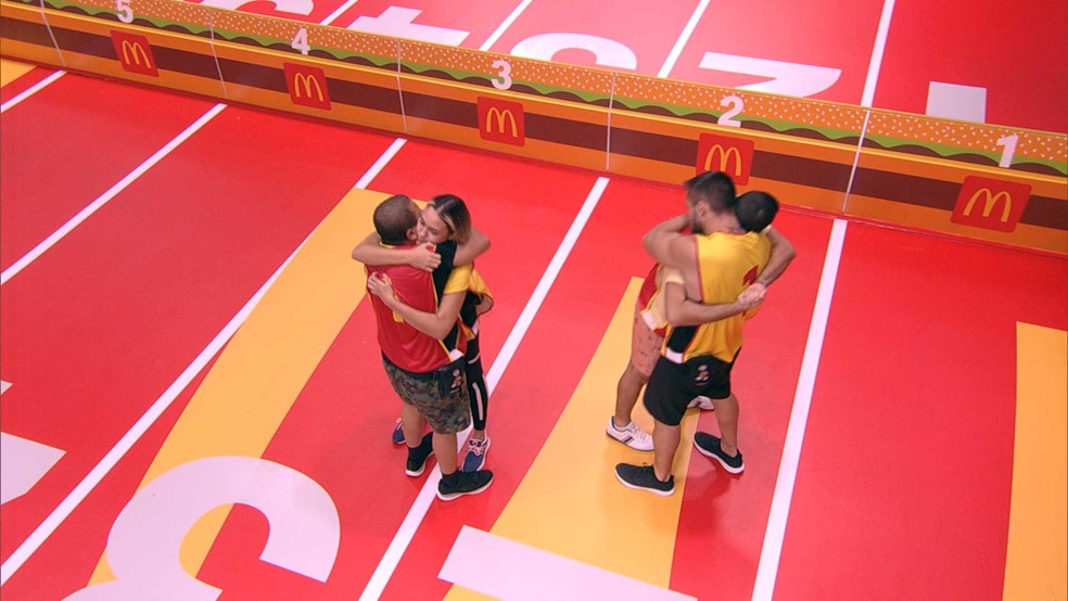 Os primeiros a terem sua eliminação confirmada são Lumena e Nego Di. Os dois logo abraçam Arthur e saem na pista de prova. "Vamos atrás do Anjo", declara Sarah, consolando Gilberto, que chora. Na sequência, eles também abraçam o instrutor de crossfit e o cantor. Depois, é a vez da dupla comemorar.