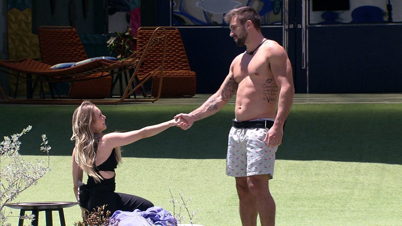 A sister se ajoelha e grita: "Arthur, você aceita ser meu parceiro no amor e no jogo até a final desse programa?" A pergunta é recebida por aplausos dos outros brother, e a atriz segue: "Depois disso é uma outra temporada de Cathur que a gente não precisa dar spoiler". O instrutor de crossfit puxa a sister e responde: "Partiu".
