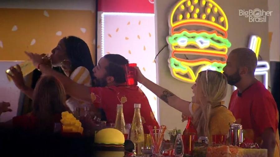 A influencer Camilla de Lucas soltou a franga na festa deste sábado (13) no BBB21. A gata virou uma garrafa de vodka e só não bebeu mais porque Gil do Vigor impediu.