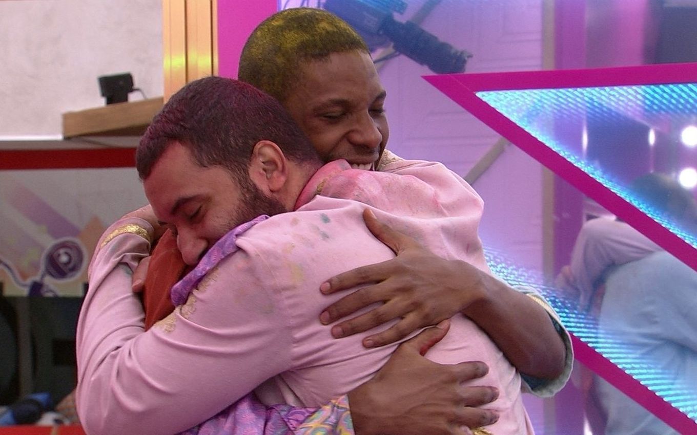 Lucas e Gilberto se abraçam após julgamentos dos brothers (Foto: reprodução)