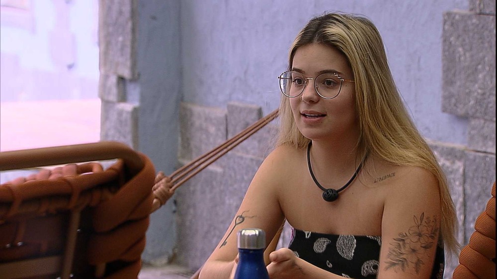 O papo continua, e a paulista afirma: "Eu vou ser bem sincera com você porque é a ultima vez que eu vou falar isso". O brother, então, ouve da sister: "Em relação à Carla (Carla Diaz), não me importa neste momento o que você e Sarah pensam. Se ela sabe que estou sendo sincera, se ela sabe que estou sendo verdadeira, se ela conseguiu me entender e me sentiu, para mim, é isso que importa".