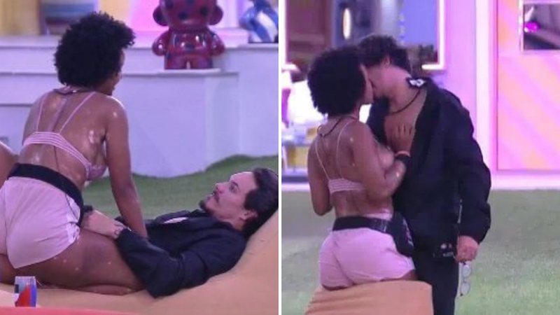 Sem reação, ele ficou animado com a proposta: "Pelo amor de Deus, não fala isso", disse ficando visivelmente excitado. Os dois seguiram trocando beijos e o rapaz precisou amarrar a camisa na cintura. "Como eu saio daqui agora?", disse Eliezer. "Espera! Fica aqui e depois você sai", aconselhou a sister.