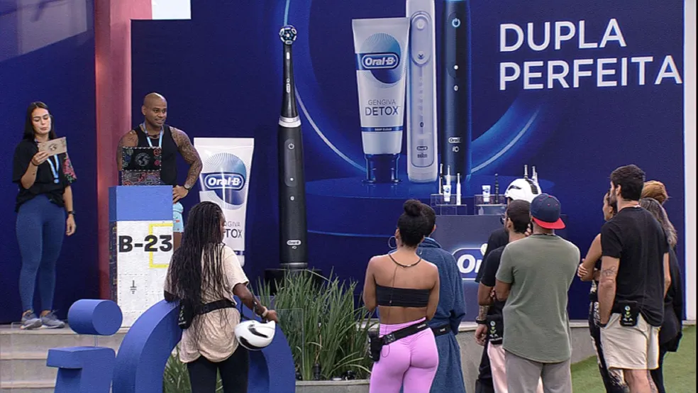 Cezar e Larissa ganham a Prova do Anjo Oral-B do BBB 23 neste sábado (11). Ao saber do resultado, Cezar disparou: "A dupla mais improvável".
