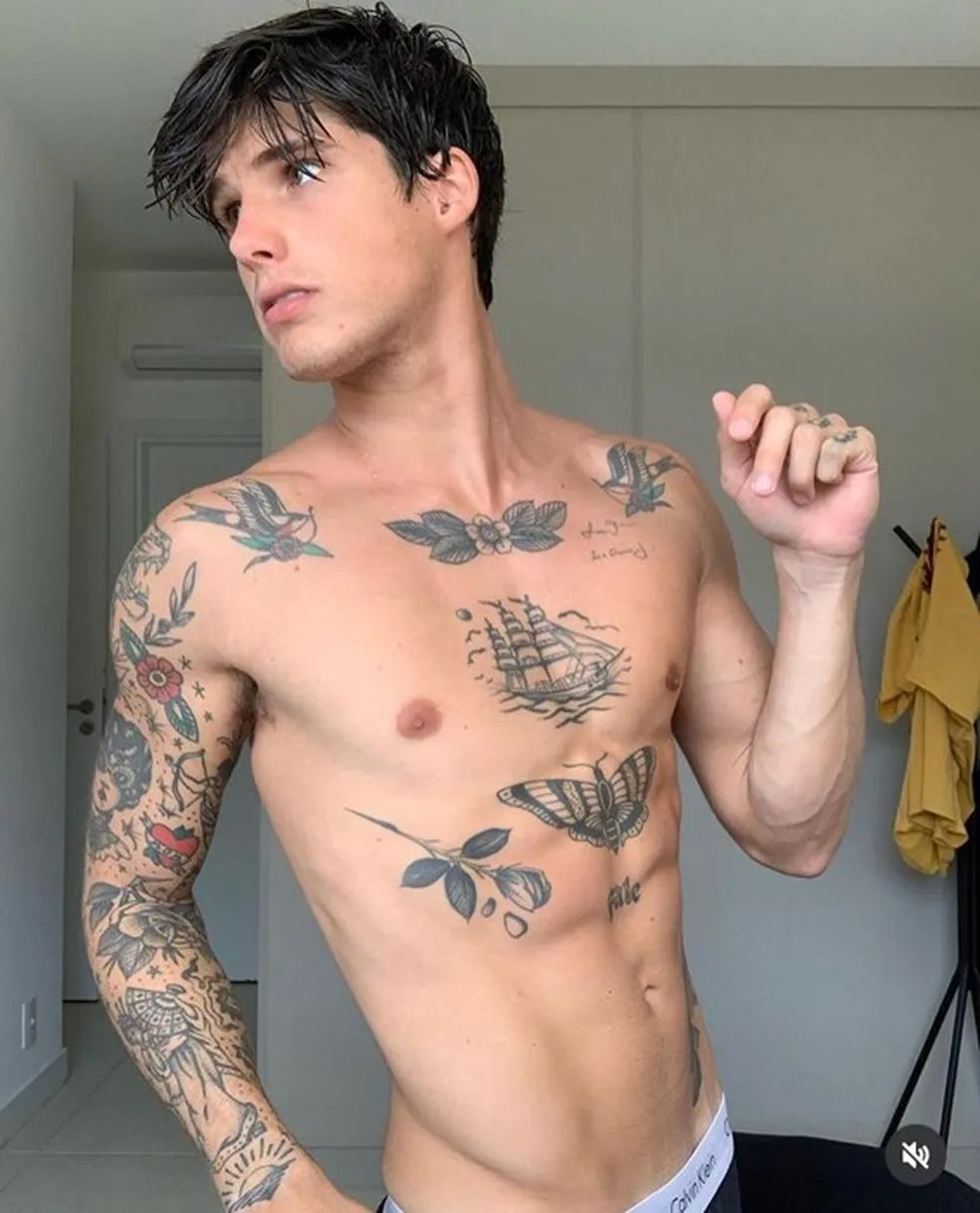 Gabriel, da Casa de Vidro, já ficou com Anitta e tem 50 tatuagens no corpo