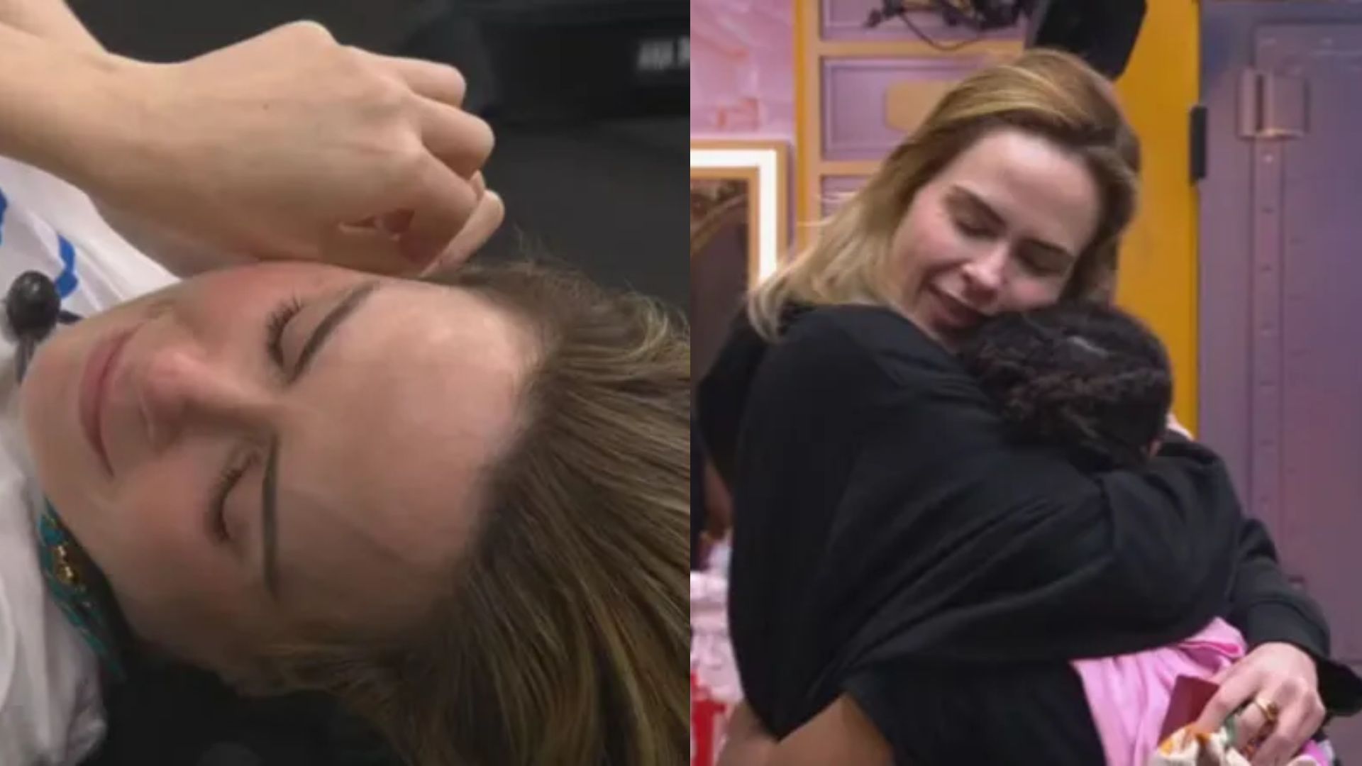 Durante a primeira hora no quarto, Ana Paula trocou seus piercings e se emocionou ao lembrar do pai, Gerardo Renault, de 96 anos. “Como diz seu pai: ‘Inventar moda? Para que furar a orelha desse tanto?’”, recordou. Em seguida, comentou a reação dele aos acessórios. “Tadinho, ele achou bonitinho meus piercings, mas achou que estava muito”. Emocionada, completou: “Eu sempre exagero, né, pai?”, antes de chorar e dizer: “Não posso pensar nele”.