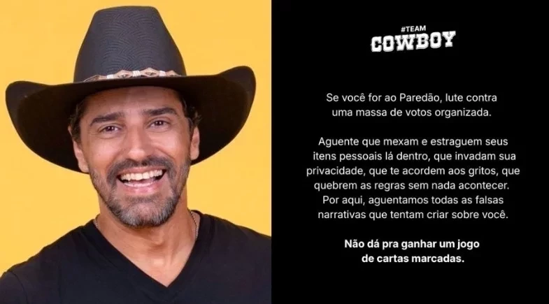 A equipe de Alberto Cowboy usou as redes sociais nesta terça-feira (25) para criticar a produção do Big Brother Brasil 26 e a TV Globo. Mesmo com o participante ainda confinado no programa, os administradores do perfil oficial atacaram a emissora dos Marinho.