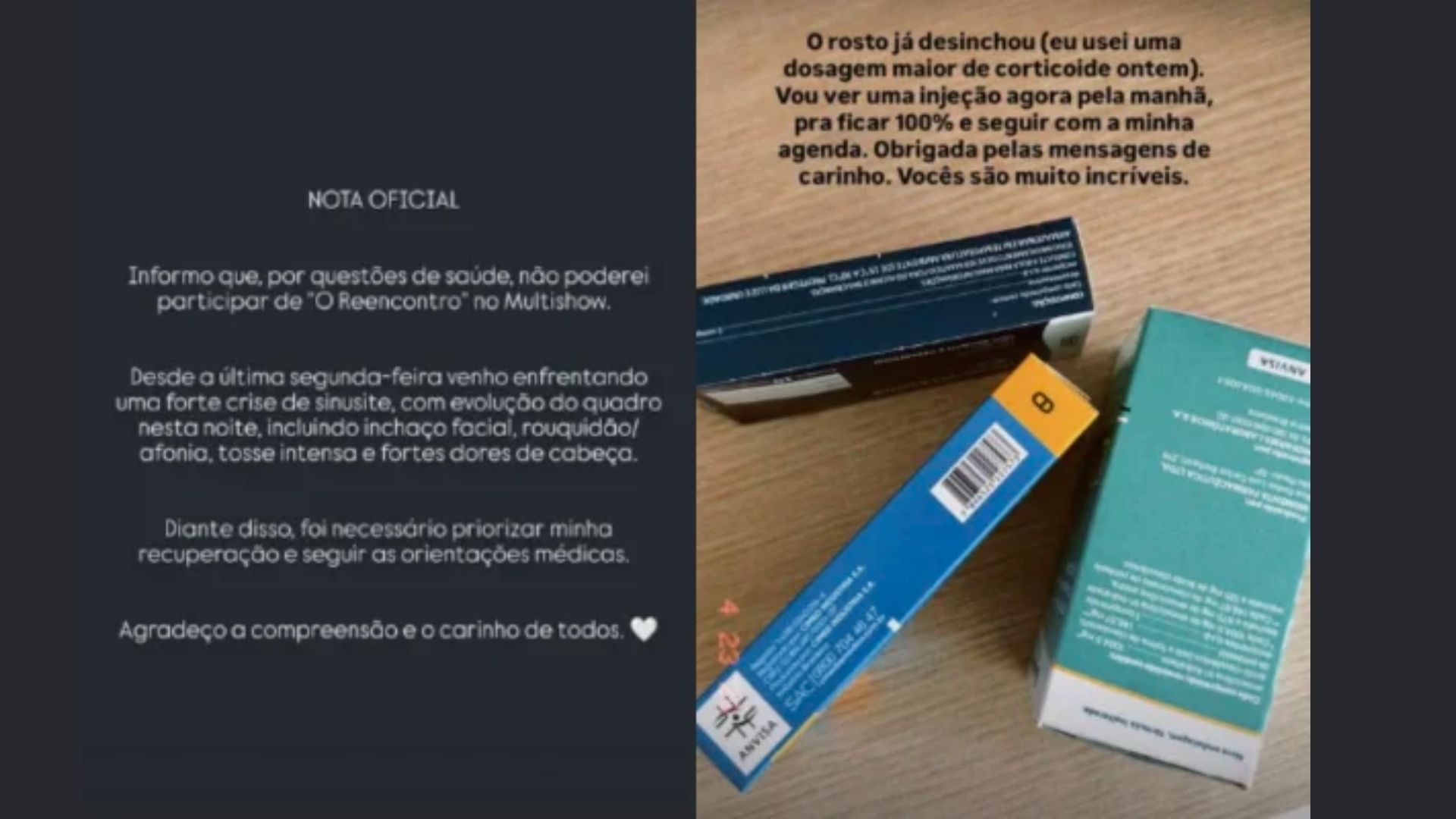 “O rosto já desinchou, eu usei uma dosagem maior de corticoide ontem. Vou ver uma injeção agora pela manhã, para ficar 100% e seguir com a minha agenda. Obrigada pelas mensagens de carinho. Vocês são muito incríveis”, publicou a ex-BBB.