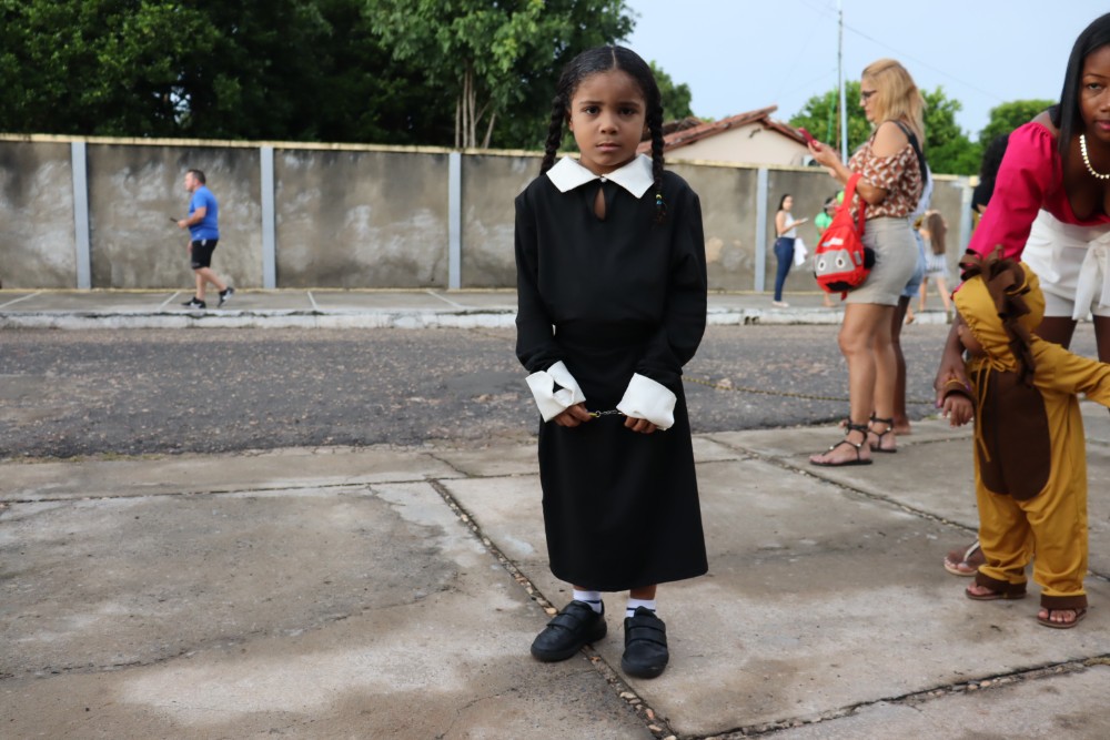 Criança usou fantasia da personagem Wandinha. Crédito: Ascom.
