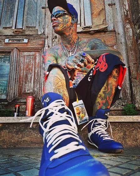 No Instagram compartilha suas mudanças.Na descrição do perfil na rede social, ele diz ser o "Bboy mais tatuado do mundo". Sobre como tudo começou, ele revelou ao jornalista Fernando Moreira do EXTRA que tomou gostou pela coisa e foi aos poucos aumentando os desenhos.