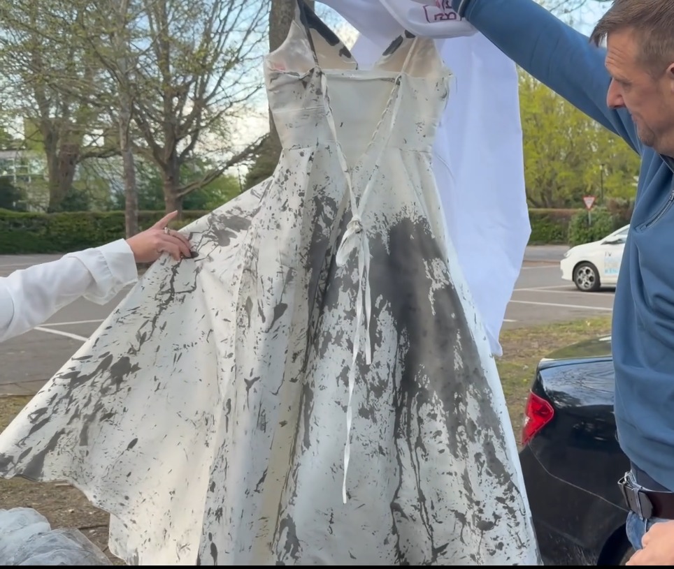 A celebração foi interrompida pela chegada inesperada de Antonia Eastwood, de 49 anos, cunhada da noiva, que não havia sido convidada. Ao aparecer no local, ela lançou tinta preta contra Gemma, atingindo o vestido e parte do corpo da noiva.