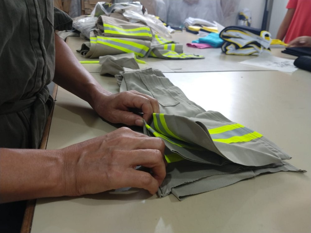 Seguindo a tendência mundial do upcycling, a Coleção intitulada ‘Seja Luz’, criada pelas colaboradoras da Casa de Zabelê, foi feita com fardamentos de proteção utilizados por eletricistas, que estavam em desuso e seriam incinerados.