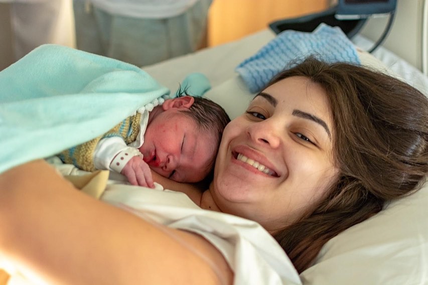 Mabel Calzolari no nascimento do filho, Nicolas (Foto: Reprodução/Instagram)