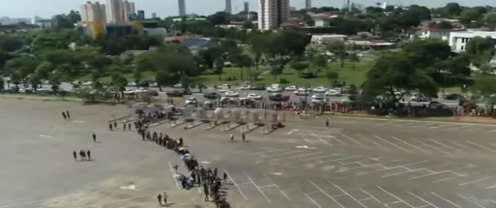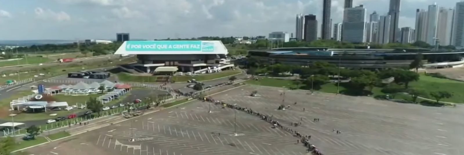 Fãs formam loga fila do lado de fora do Goiânia Arena. Imagem: Reprodução/CNN