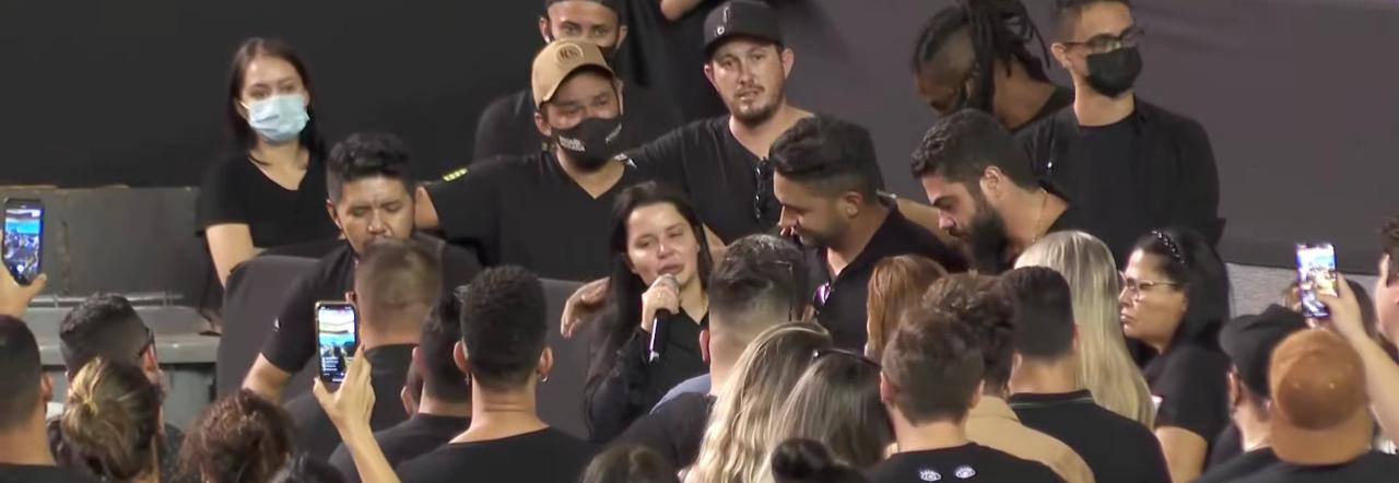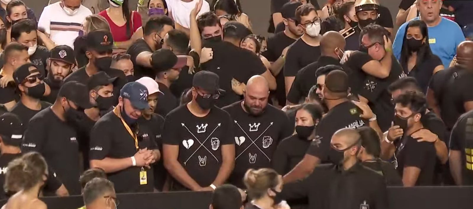 Após momento de homenagem conduzido por cantores sertanejos, amigos e familiares de Marília fazem uma oração