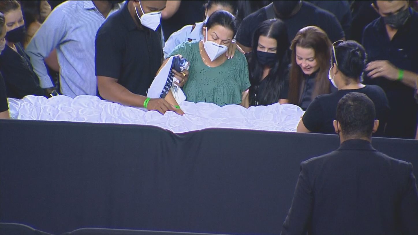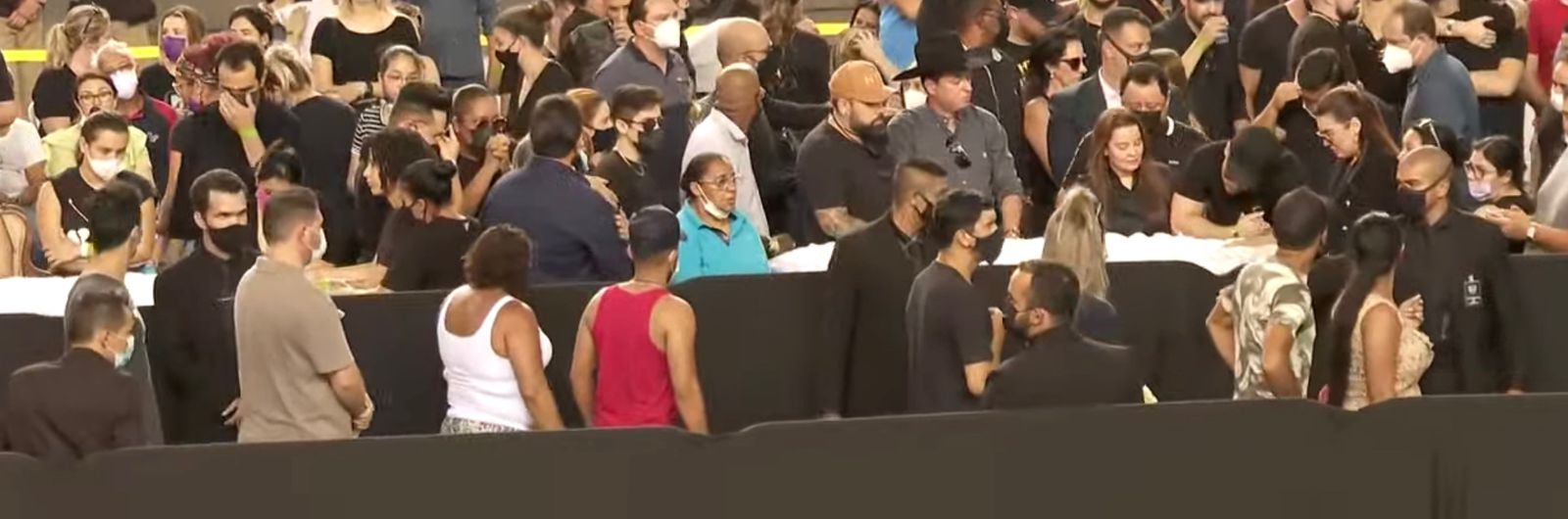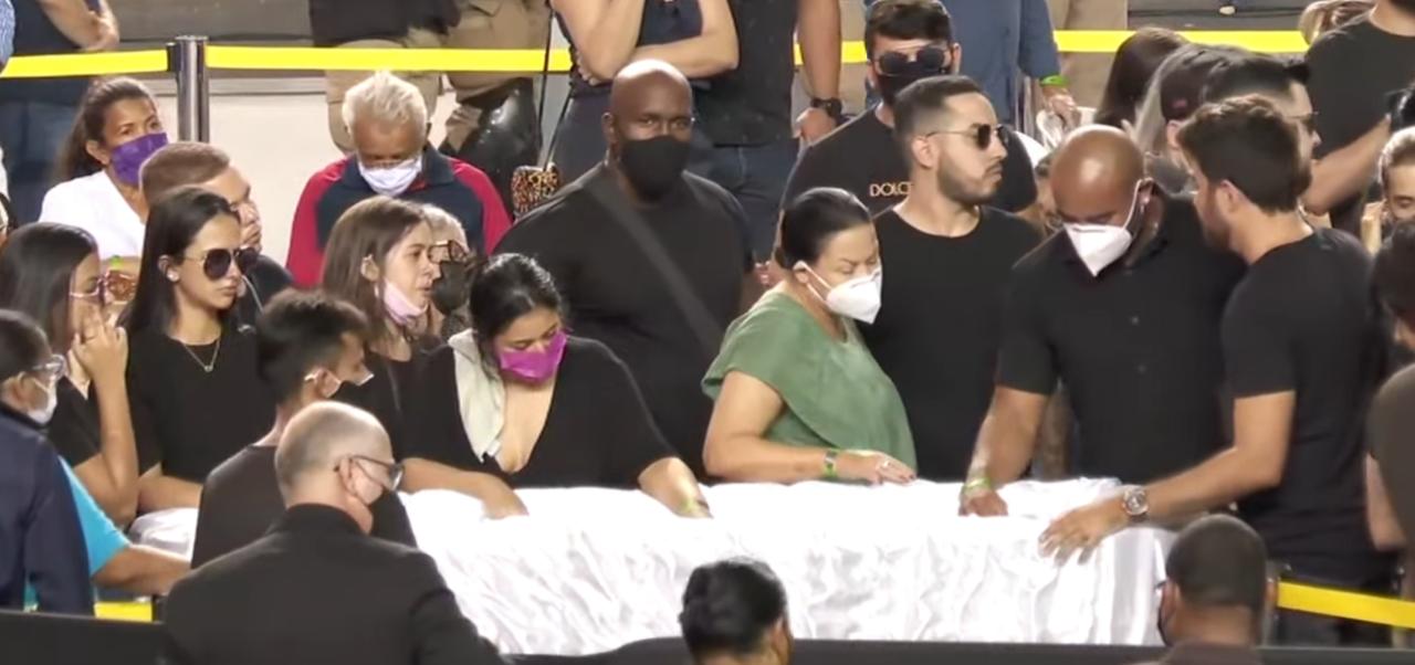 A mãe da cantora volta a se aproximar do caixão para se despedir da filha. Dentro do ginásio já não há mais movimentação de fãs.