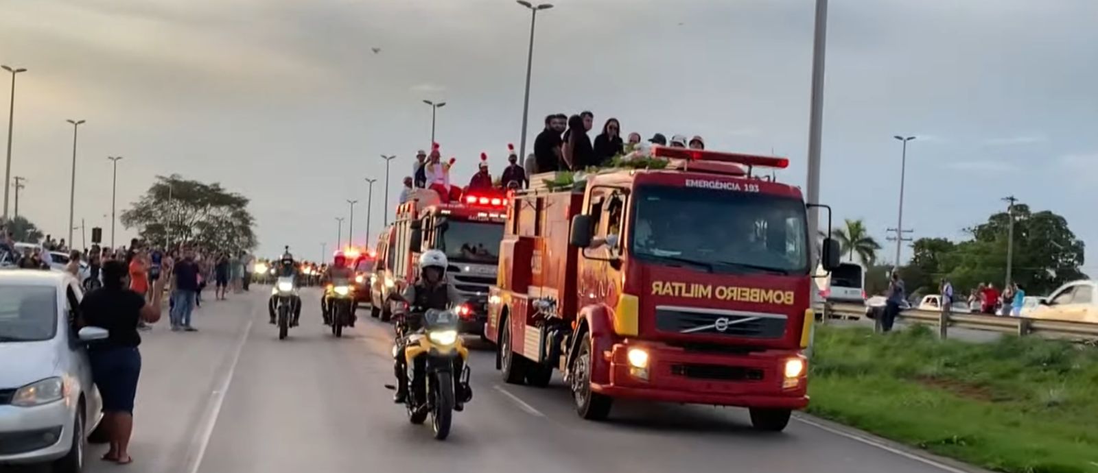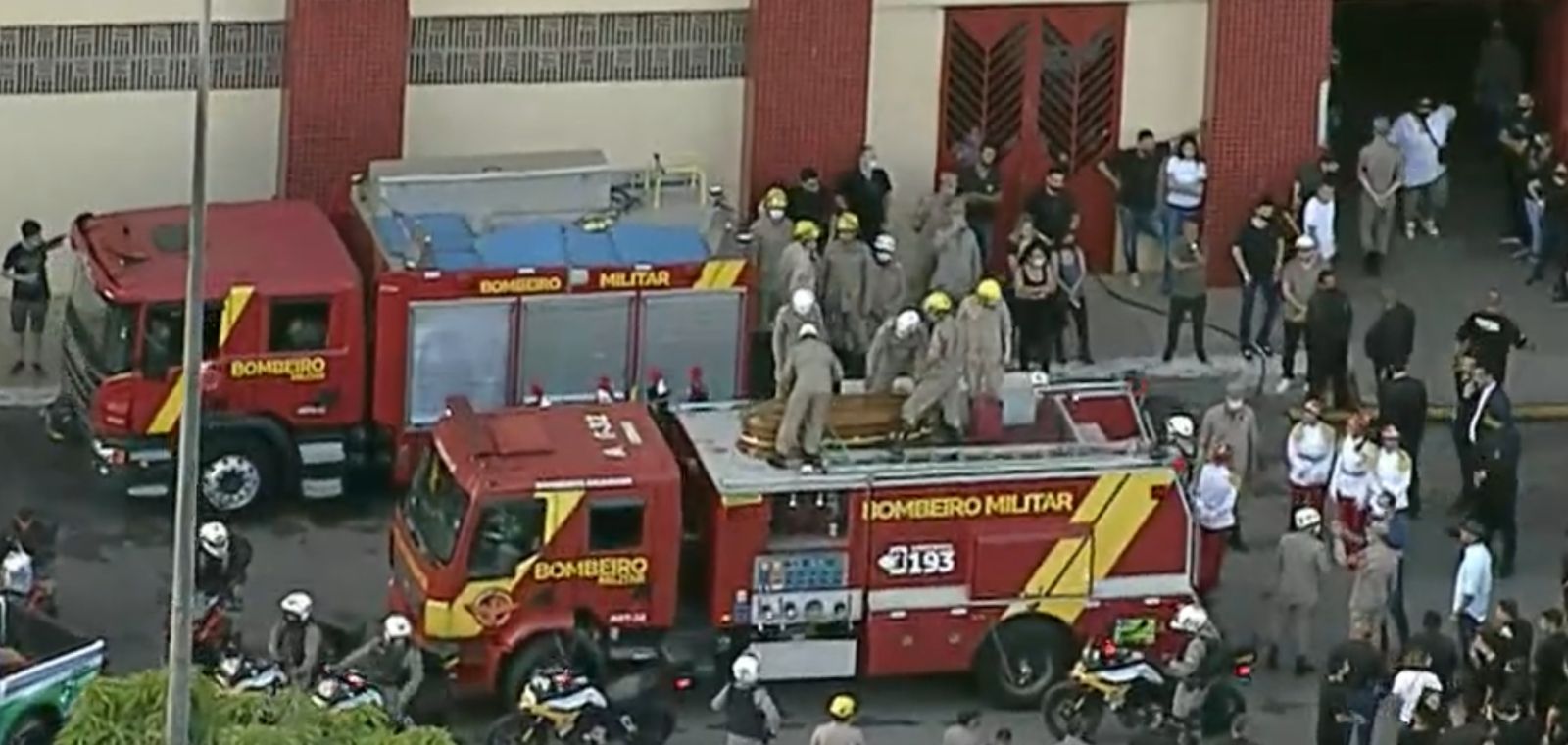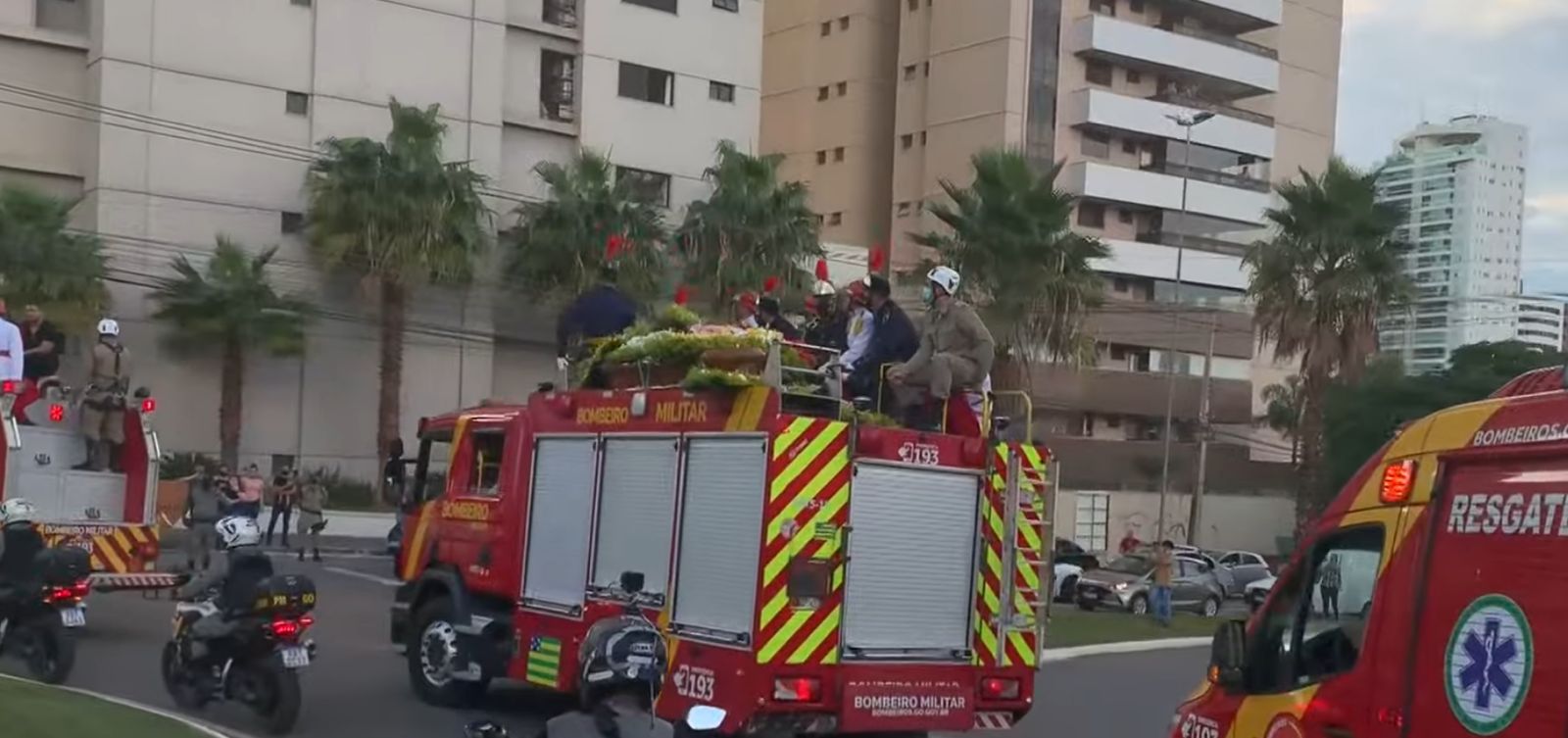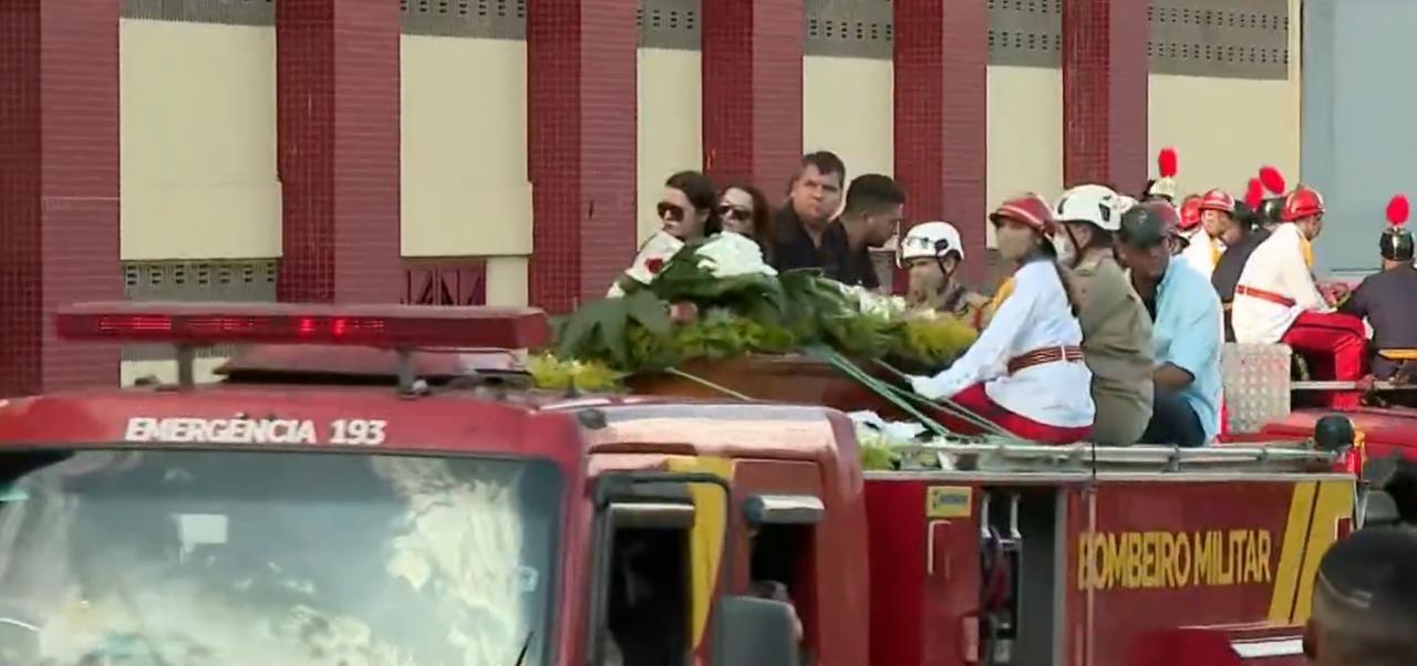 Artistas e amigos da cantora seguem junto com o cortejo em veículos do Corpo de Bombeiros. Imagem: Reprodução/GloboNews