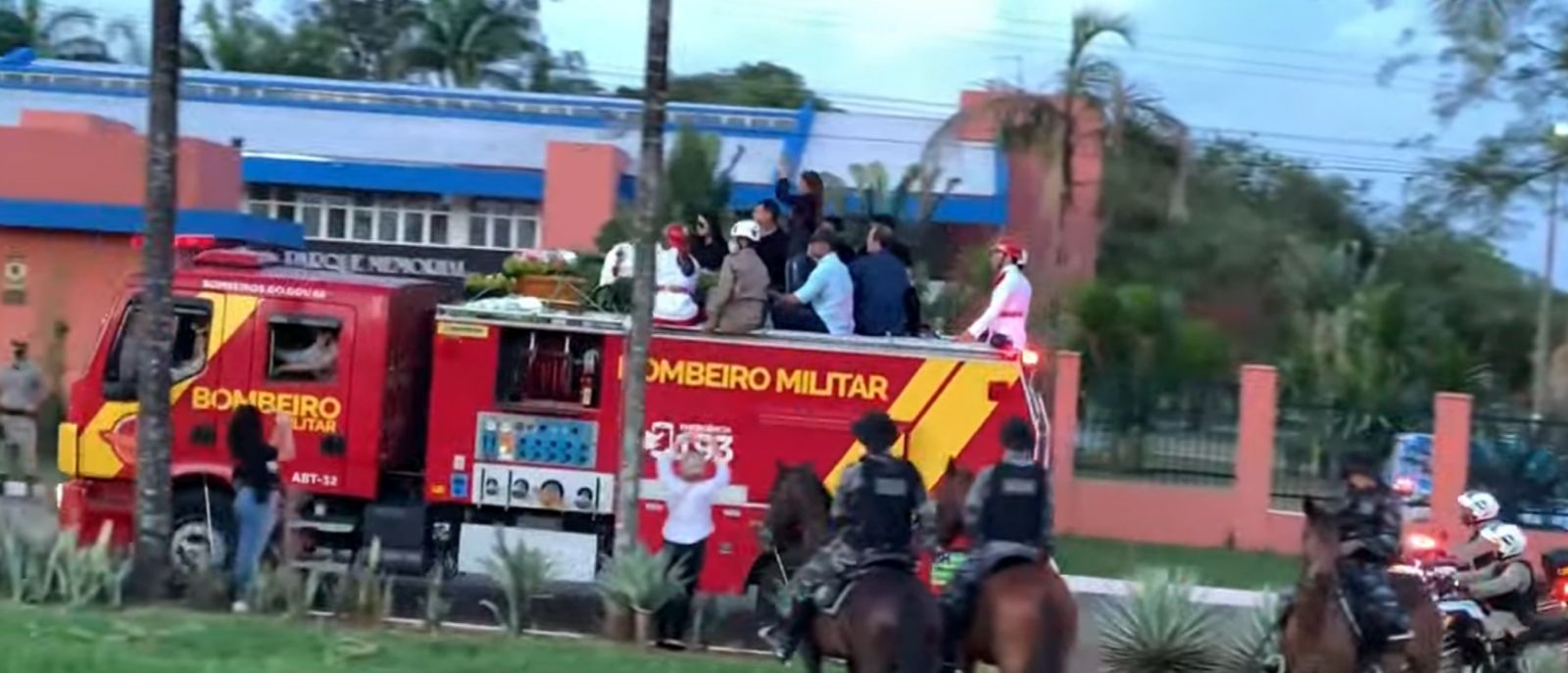 Dois carros do Corpo de Bombeiros foram mobilizados para o cortejo. No veículo que leva o corpo de Marília seguem os cantores Maiara, Maraisa, Henrique e Juliano, e alguns amigos.