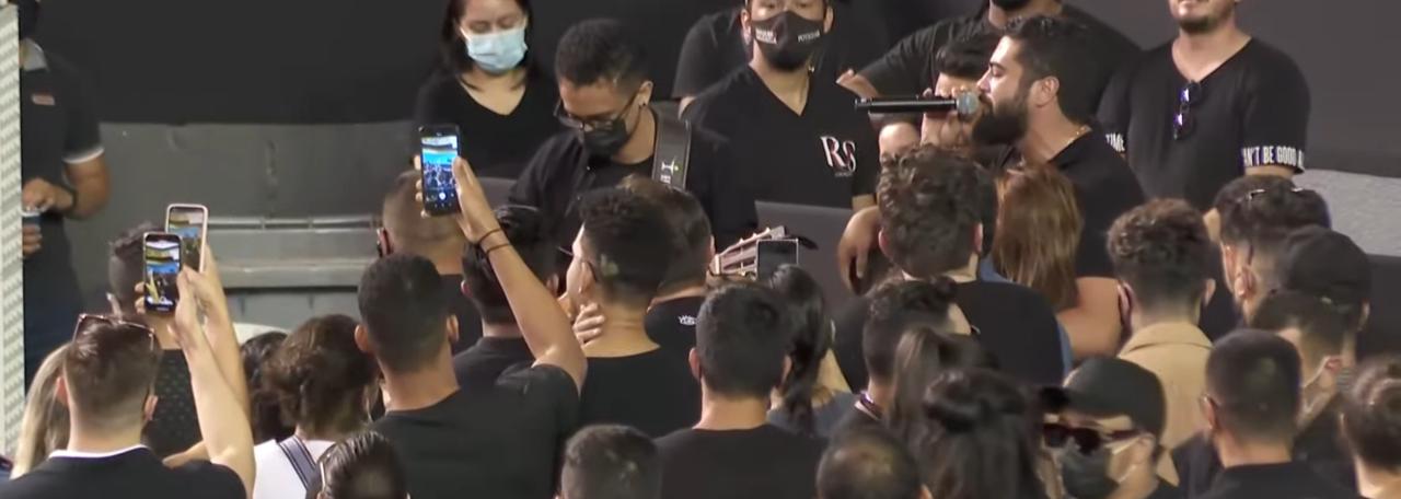 Pessoas estão sendo orientadas a deixar celulares no bolso, para evitar o vazamento de fotos de Marília Mendonça no caixão. Imagem: Reprodução/CNNAtualizada às 14h40