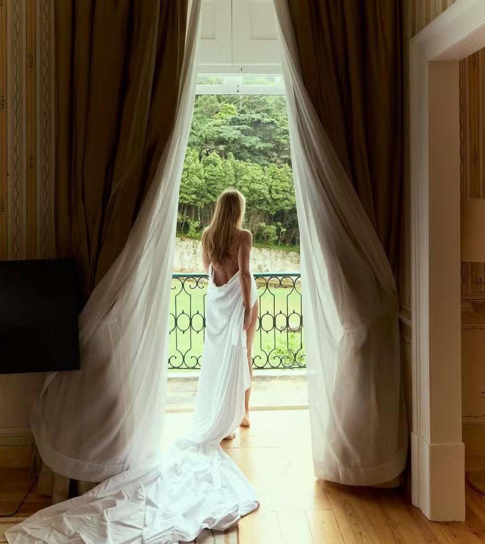 Nos cliques, a apresentadora de A Fazenda aparece fazendo topless no luxuoso quarto durante sua hospedagem, cuja diária em junho pode chegar a R$ 7,2 mil em junho, segundo a Booking.com. "Acordar em Sintra com vista pra história, onde o tempo desacelera e tudo vira poesia", escreveu na legenda da publicação.