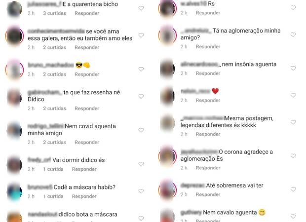 "Ui, amo", legendou Adriano, ao publicar uma foto em sua rede social. "E a quarentena?", quis saber uma pessoa. "Cadê a máscara?", perguntou mais um. "O corona agradece a aglomeração", ironizou um terceiro.