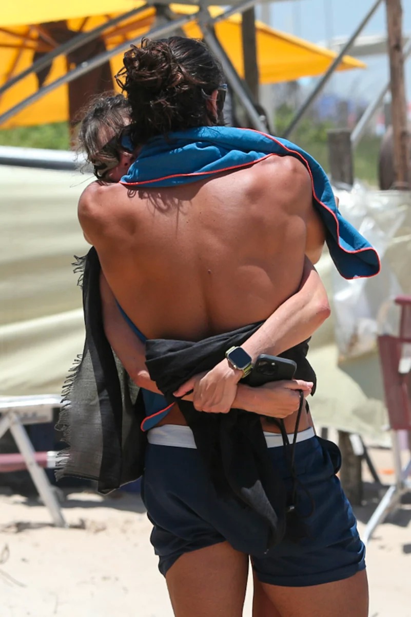 A atriz apostou em um biquíni preto, destacando a boa forma, enquanto Simas escolheu uma bermuda azul. Os dois usaram óculos escuros e, ao final do passeio, foram vistos caminhando pela orla. Sorridentes, chegaram até a acenar para o paparazzo que registrava o momento.