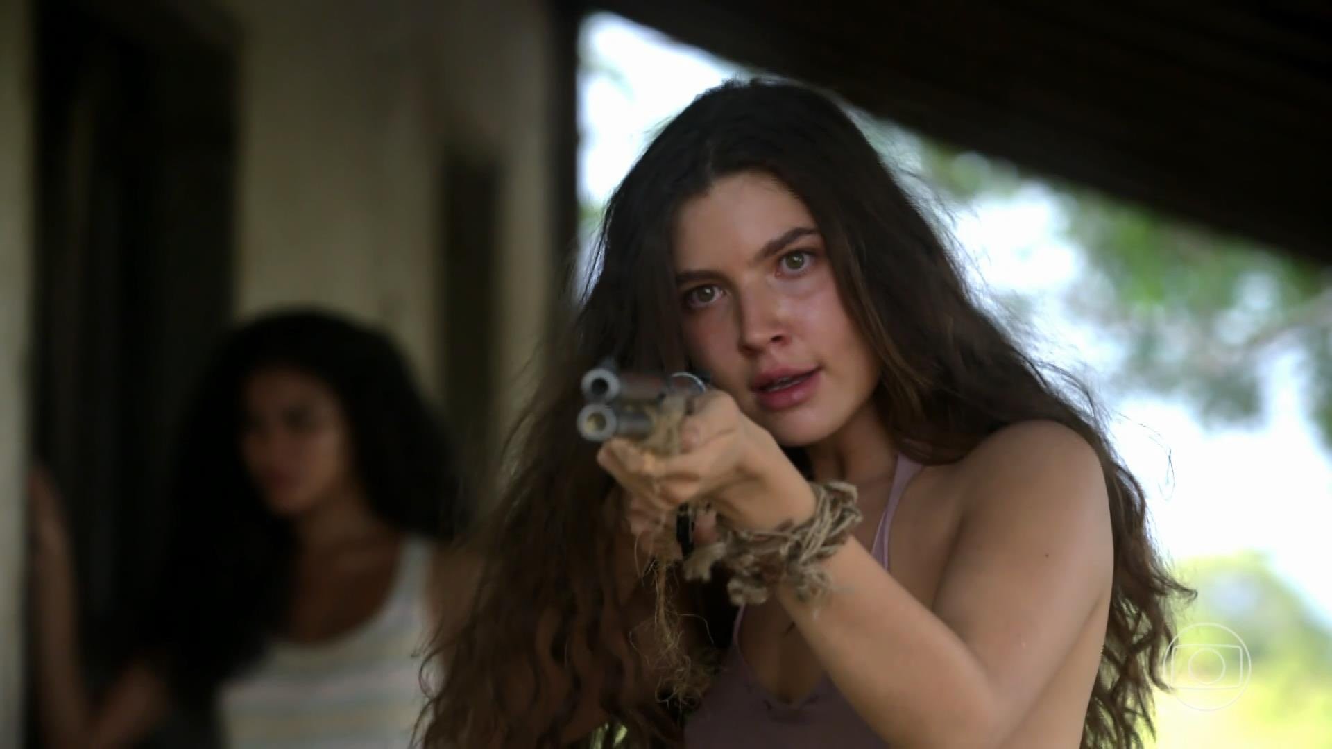Alanis Guillen caracterizada como Juma Marruá, protagonista de Pantanal (Foto: Reprodução/TV Globo)