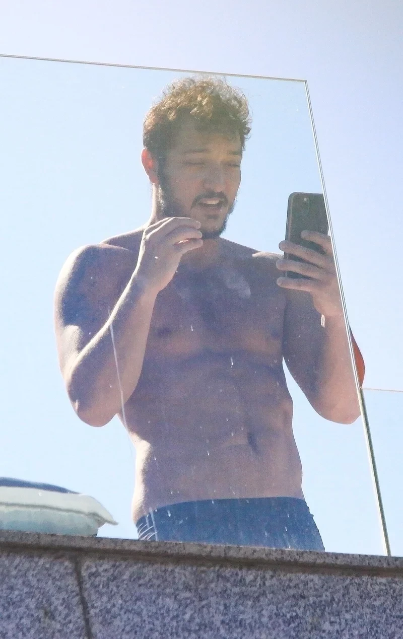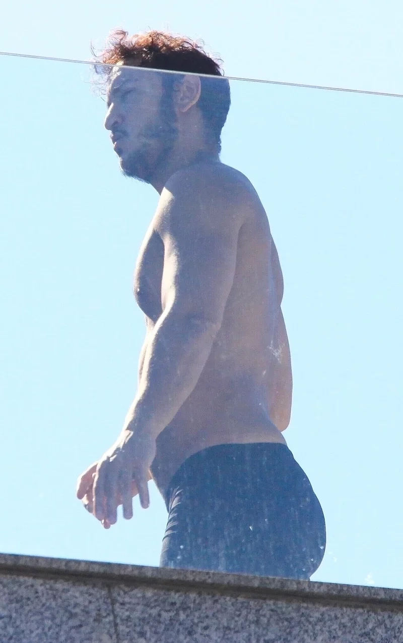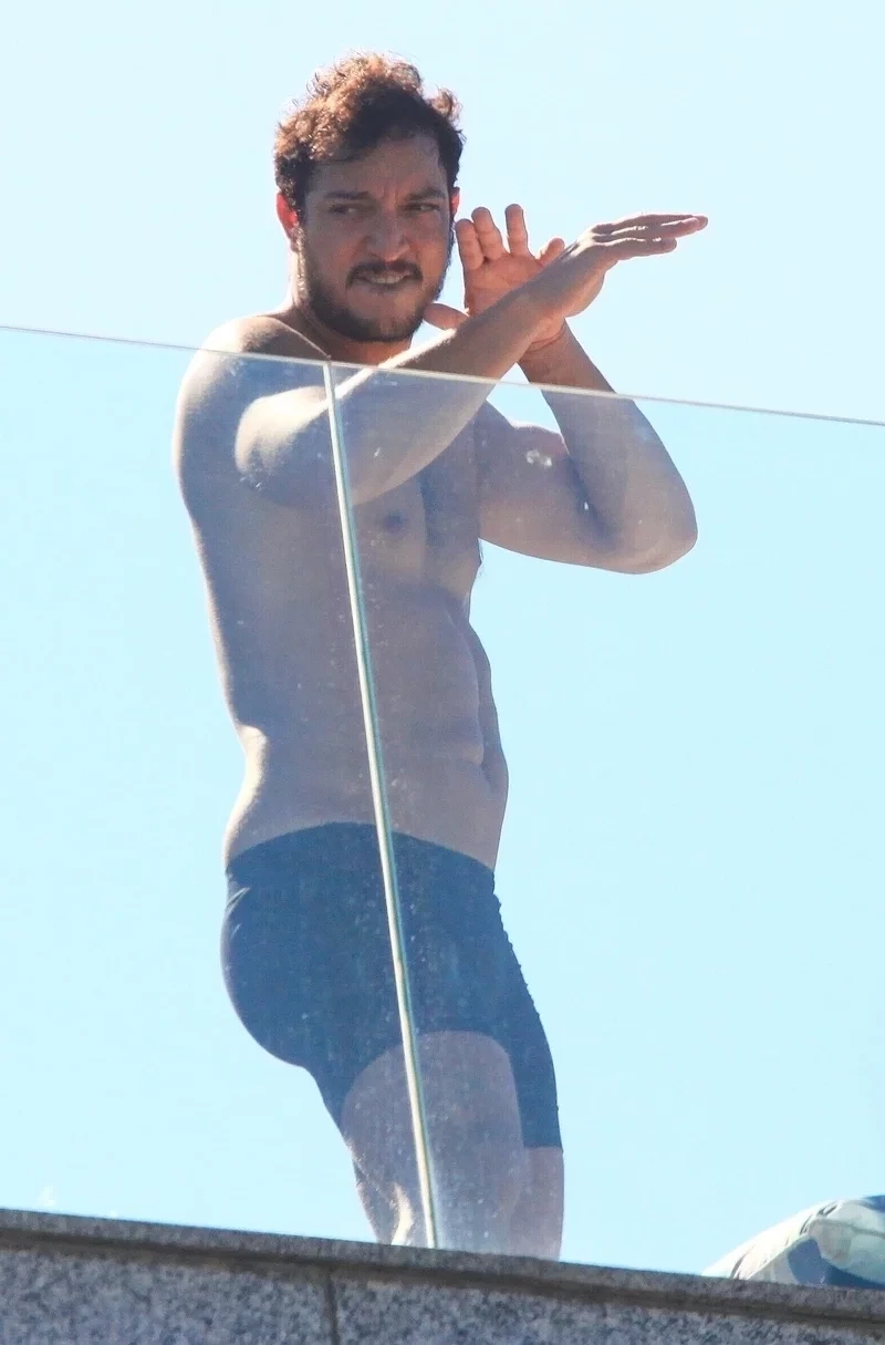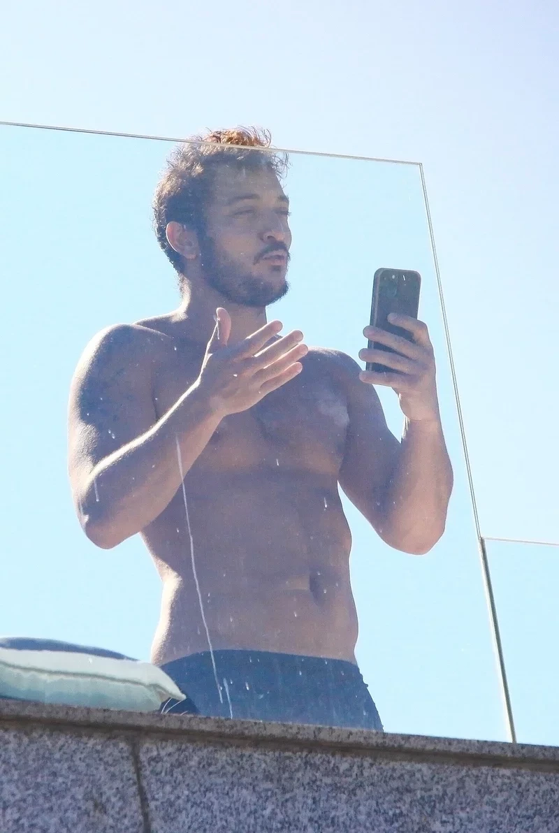 Allan Souza Lima apareceu bem à vontade na sacada do apartamento da namorada Rafa Kalimann, no Rio de Janeiro. Na manhã desta segunda-feira (3), o ator foi fotografado apenas de cueca enquanto mexia no celular.
