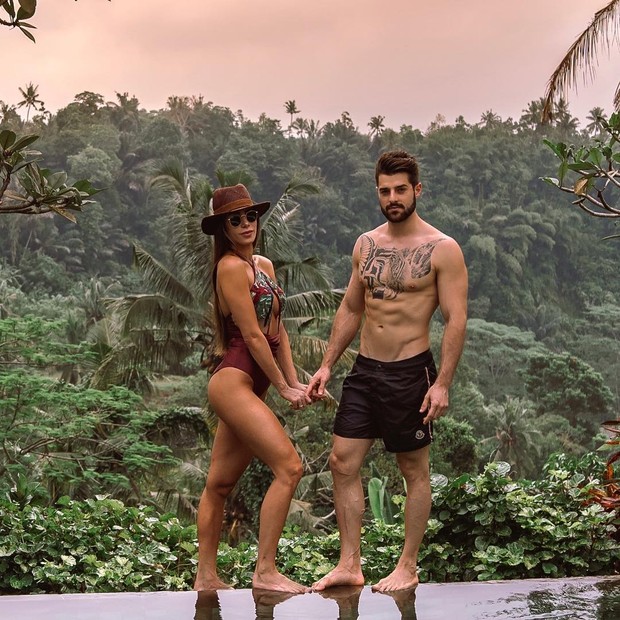 Alok e Romana Novais renovaram os votos de casamento em Bali, na Indonésia, e neste domingo (14) apareceram juntinhos à beira da piscina no hotel de luxo em que estão hospedados. "Amor verdadeiro", escreveu o DJ na legenda.
