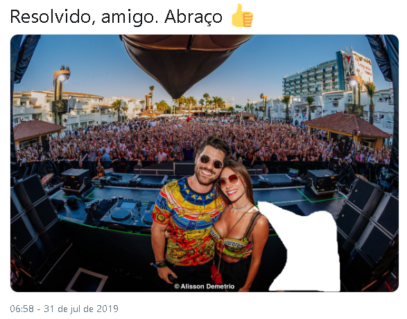 O problema, descontraído, surgiu da zoeira dos internautas, que fizeram diversas montagens com a foto. Mas, teve também quem atendeu o pedido do artista e retiraram o funcionário da imagem.