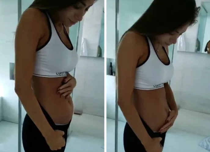 "Amor, achei que ia chegar de viagem e ia ver uma barriga de grávida. Quase 6 meses e cadê essa barriga?", questiona ele. "Minha barriga está maior que a sua!", brincou o DJ levantando a camisa -- veja abaixo.