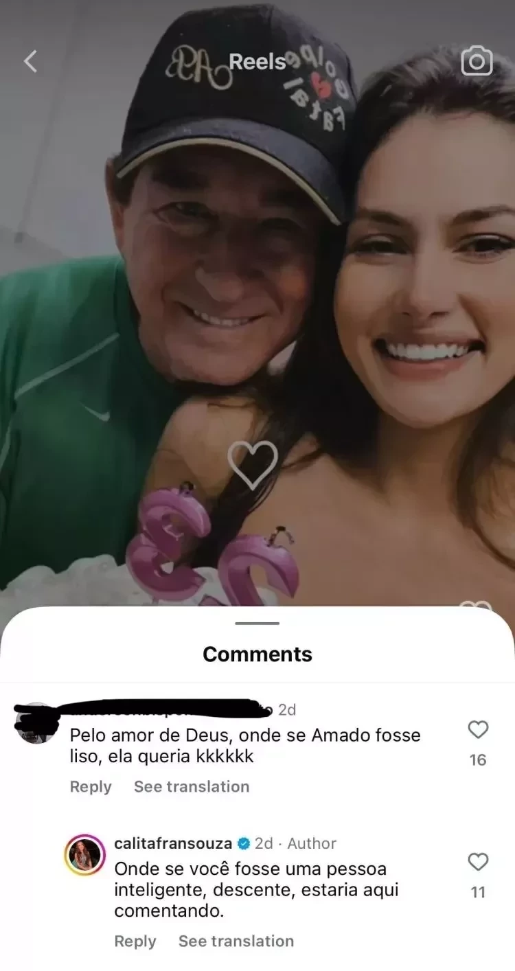 Até o momento, nem Amado Batista nem Calita Franciele confirmaram o casamento nas redes sociais. Recentemente, a miss respondeu a um comentário insinuando que estaria com o cantor por interesse: “Onde se você fosse uma pessoa inteligente, descente estaria aqui comentando”, rebateu ela, após um seguidor questionar suas intenções.