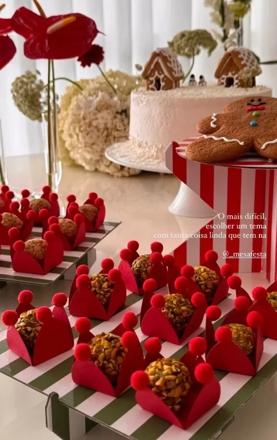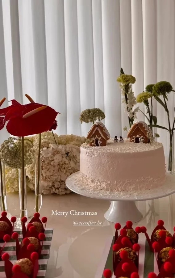 Amanda Kimberlly compartilhou nesta quinta-feira (5), registros do mêsversário de sua filha com Neymar, a pequena Helena, que está completando 5 meses. A modelo promoveu uma festinha íntima com tema natalino. Sempre discreta, ela compartilhou apenas algumas fotos que mostram a decoração da mesa em tons vermelhos e o bolo.