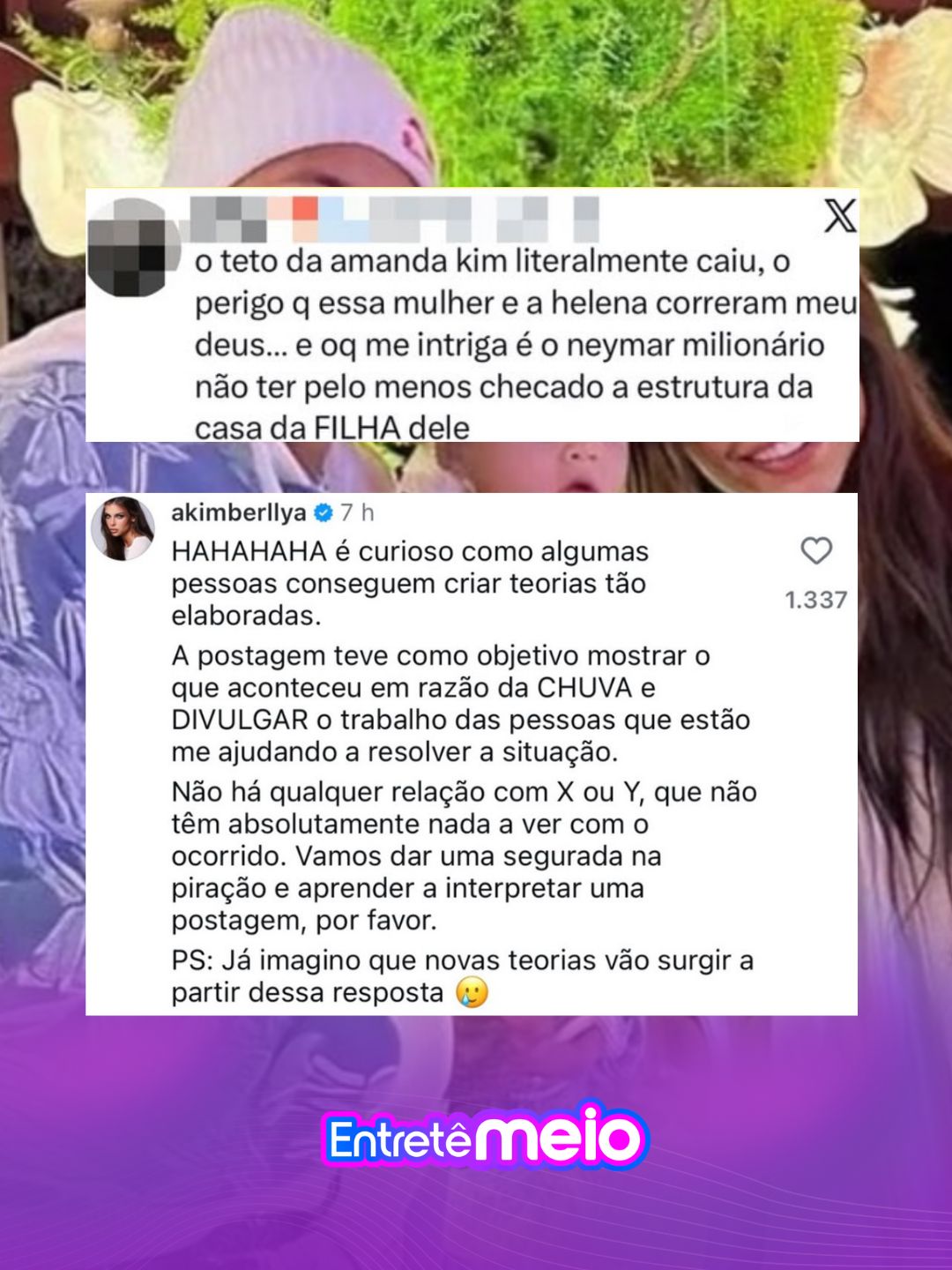 “O teto da Amanda Kim literalmente caiu, o perigo que essa mulher e a Helena correram meu Deus. E o que me intriga é o Neymar milionário não ter pelo menos chegado a estrutura da casa da filha dele”, escreveu o internauta.