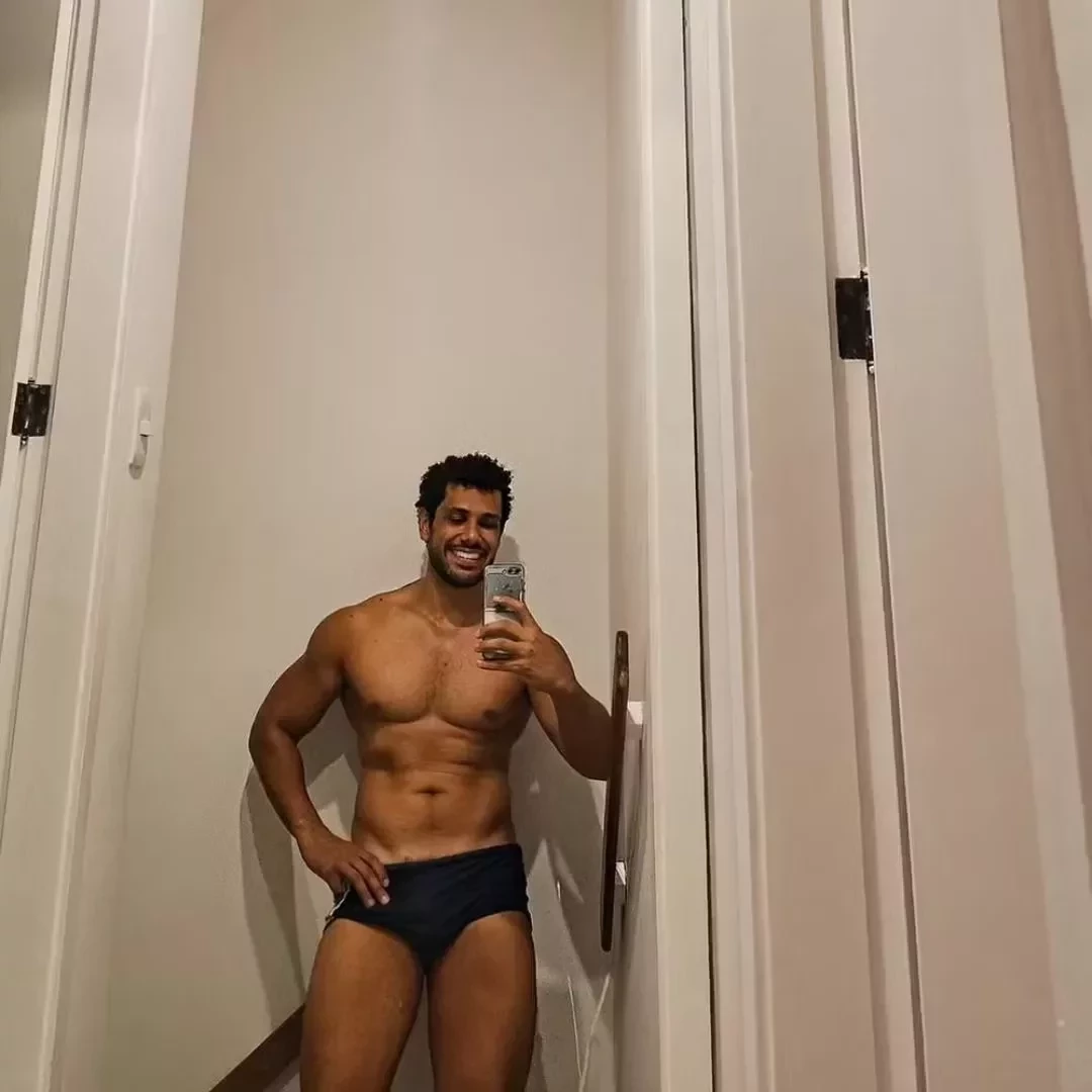 No registro, Amaury posou para uma selfie diante de um espelho, trajando exclusivamente uma sunga preta. Na legenda da postagem, ele escreveu: "Crescendo".