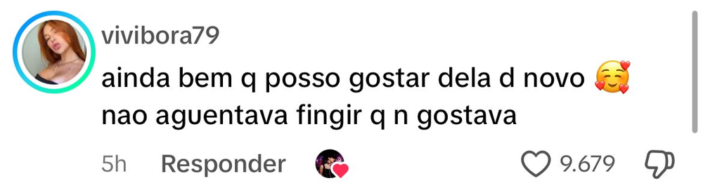 Ana Castela, de 22 anos, reagiu a um comentário que repercutiu nas redes sociais nessa quinta-feira (1º). A cantora curtiu uma publicação de um fã-clube de Virginia Fonseca, de 26, ex-esposa de Zé Felipe, que dizia: “Ainda bem que posso gostar dela de novo, não aguentava fingir que não gostava”.