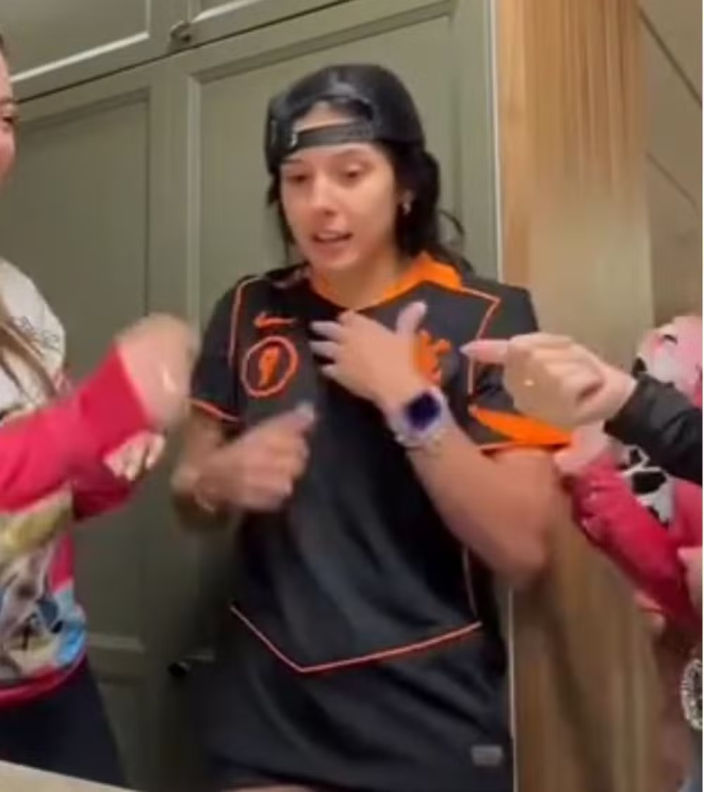 Ana Castela — Foto: Reprodução/ DivulgaçãoNa hora da revelação, Ana Castela se mostrou tensa e comemorou o resultado positivo da amiga. Ela também mostrou que ficou arrepiada.