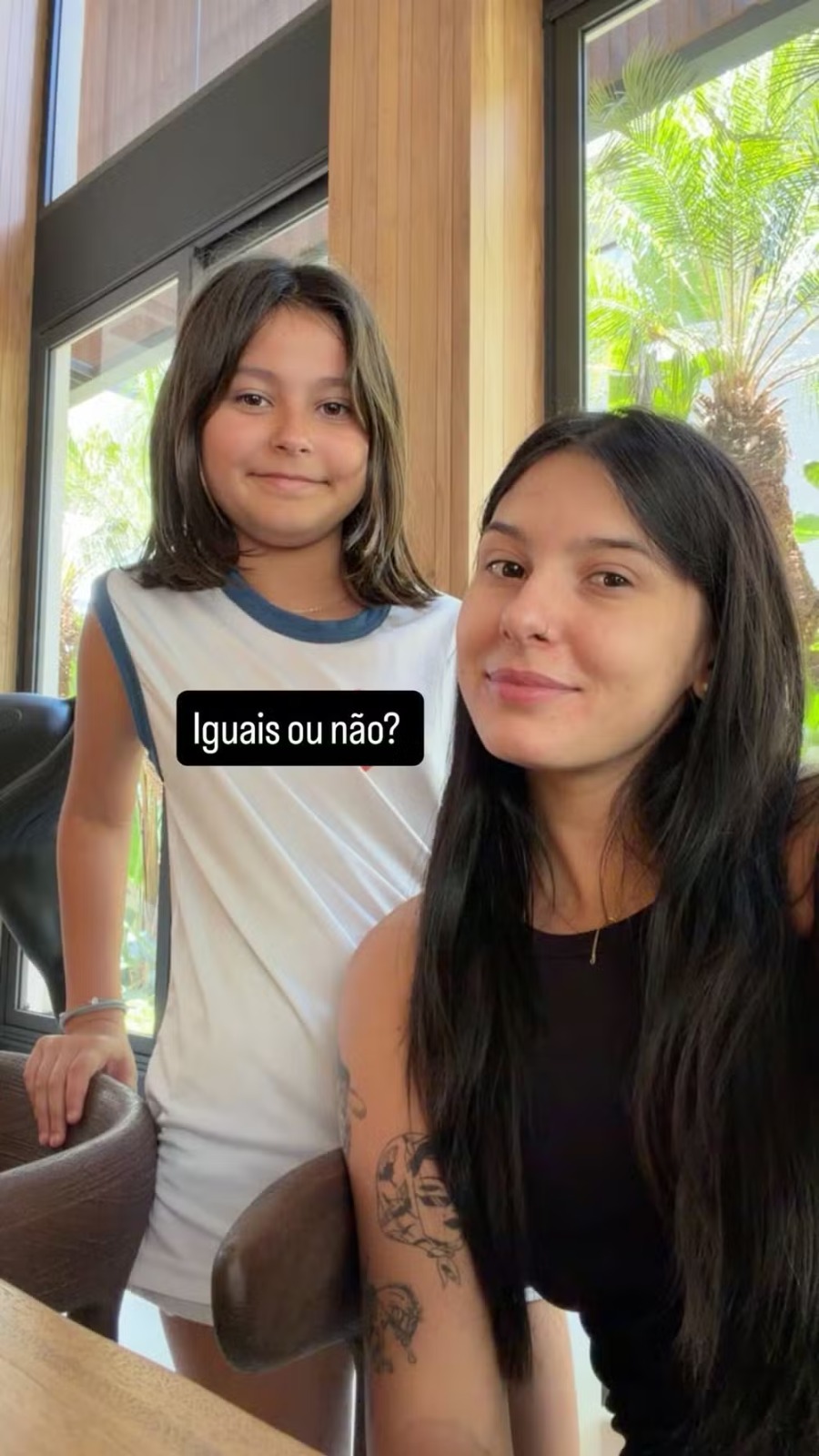 Ana Castela postou uma foto rara ao lado da irmã mais nova, Antonella, de 9 anos, e questionou seus seguidores: “Iguais ou não?”, nesta quinta-feira (27). Nos comentários, os internautas não pouparam elogios e comparações entre as duas. “Muito iguais”, disse uma fã.