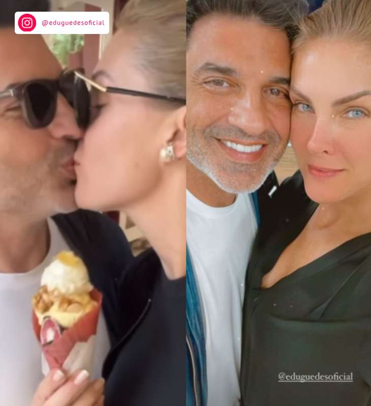 Ana Hickmann e Edu Guedes tomam sorvete e trocam beijos apaixonados Foto: Reprodução-Instagram