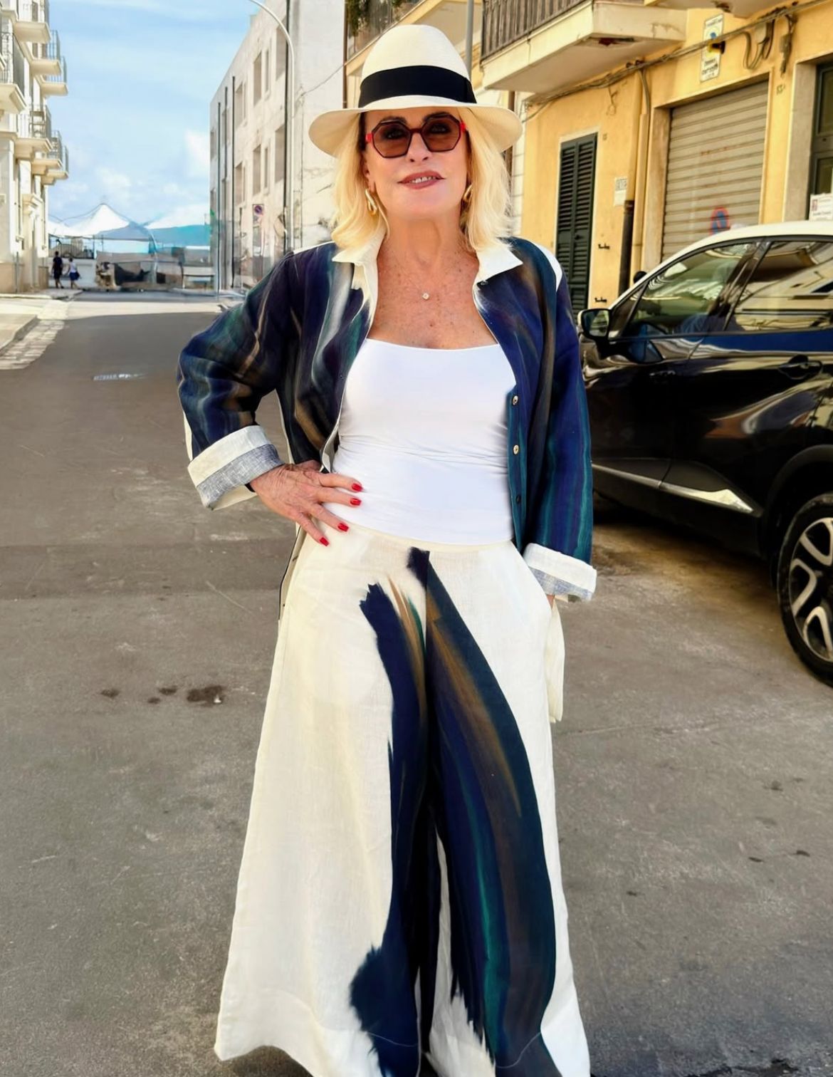 “Aqui em Polignano a Mare o sol parece que brilha diferente… O clima abraça a gente mesmo. E olha que curioso: foi aqui que nasceu Domenico Modugno, o cantor de Volare. Tem até uma estátua dele de braços abertos para o mar, como se cantasse junto com o azul desse marzão maravilhoso”, escreveu a apresentadora em suas redes sociais.